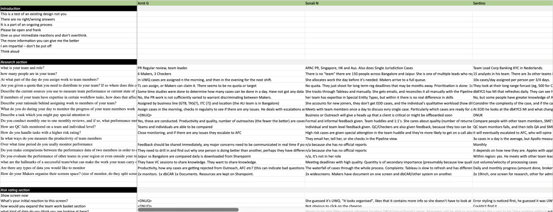 - To sample a wide population we were able to request user profiles (role and region) from a pool of 6000 across the company.