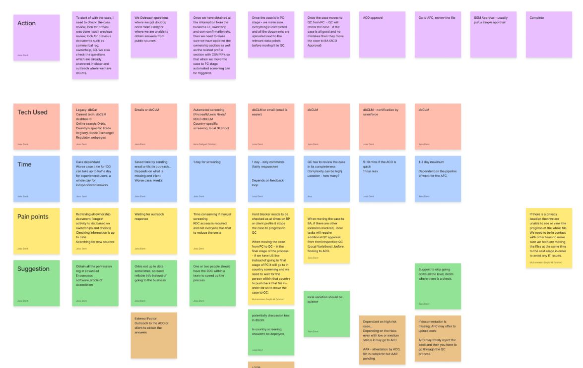 Workshop participants were available in London to do face-to-face process mapping exercises. To get an international perspective, we validated the output with other teams globally in remote workshops using Miro and Figjam.