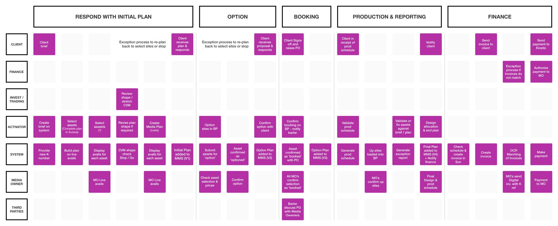 From the customer becoming aware of their need, through to post-campaign reporting and reconciliations.